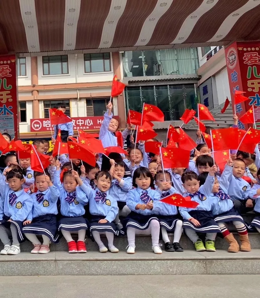 2019年9月28日,甘肅甘谷。幼兒園的小朋友歡快地揮動手中的五星紅旗,祝福祖國生日快樂!作者:草野沐風