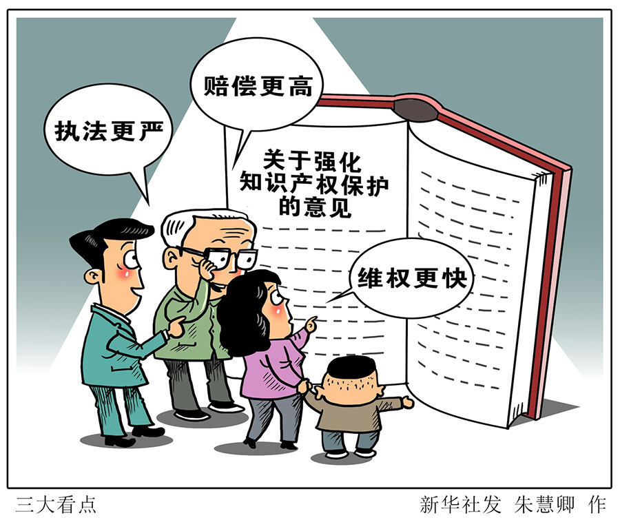 圖表:執(zhí)法更嚴(yán)、賠償更高、維權(quán)更快——《關(guān)于強(qiáng)化知識(shí)產(chǎn)權(quán)保護(hù)的意見(jiàn)》三大看點(diǎn) 新華社記者 陳琛 編制
