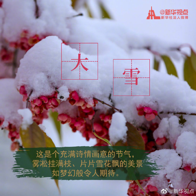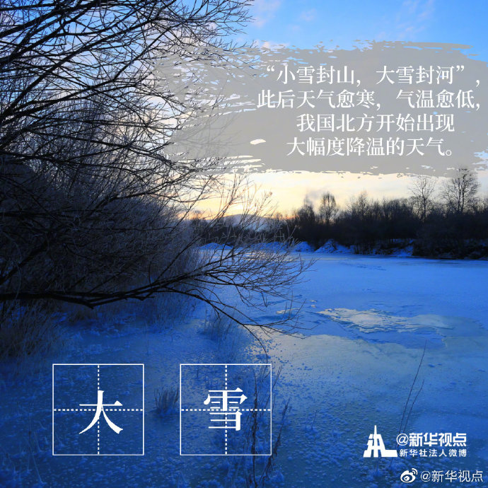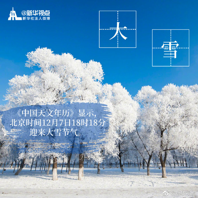 “白雪紛紛何所似?未若柳絮因風(fēng)起。”今天18時(shí)18分迎來“大雪”節(jié)氣。相較于“小雪”節(jié)氣,“大雪”節(jié)氣時(shí),氣溫不斷下降,雪量不斷增大,下雪天數(shù)不斷增加。天氣漸冷,注意添衣保暖。?