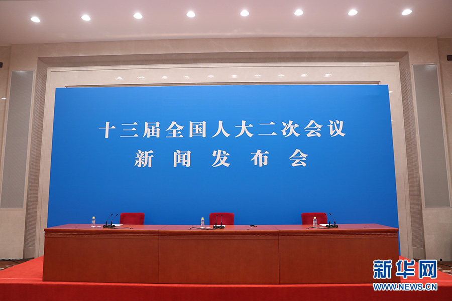 十三屆全國人大二次會議3月4日上午11時15分在人民大會堂新聞發布廳舉行新聞發布會,由大會發言人就大會議程和人大工作相關的問題回答中外記者提問。圖為發布會現場。新華網/中國政府網 陳杰 攝