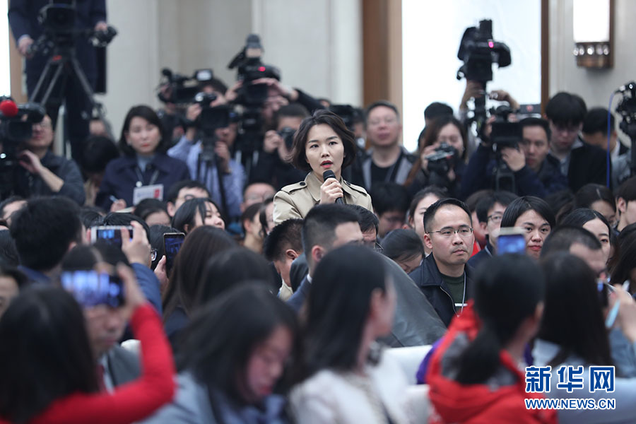 十三屆全國人大二次會議3月4日上午11時15分在人民大會堂新聞發(fā)布廳舉行新聞發(fā)布會,由大會發(fā)言人就大會議程和人大工作相關(guān)的問題回答中外記者提問。圖為韓國廣播電視臺記者提問。新華網(wǎng)/中國政府網(wǎng) 陳杰 攝?