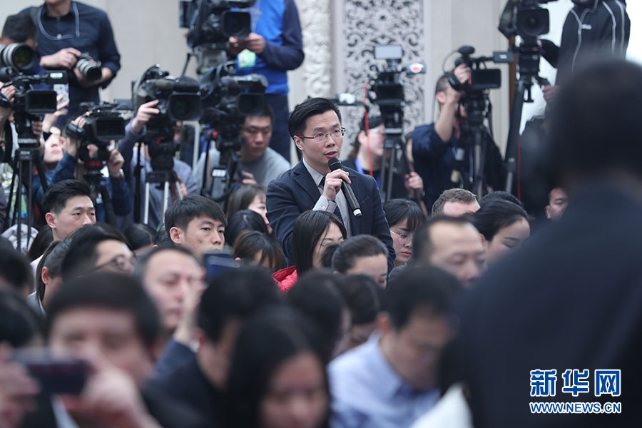 十三屆全國人大二次會議3月4日上午11時15分在人民大會堂新聞發布廳舉行新聞發布會,由大會發言人就大會議程和人大工作相關的問題回答中外記者提問。圖為新華社記者提問。新華網/中國政府網 陳杰 攝
