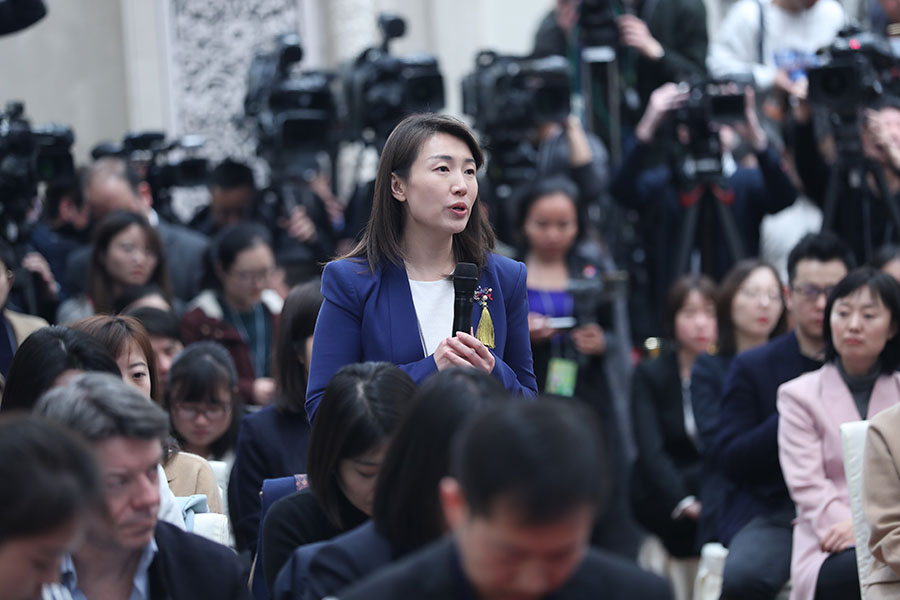 十三屆全國人大二次會議3月4日上午11時15分在人民大會堂新聞發布廳舉行新聞發布會,由大會發言人就大會議程和人大工作相關的問題回答中外記者提問。圖為鳳凰衛視記者提問。新華網/中國政府網 陳杰 攝?