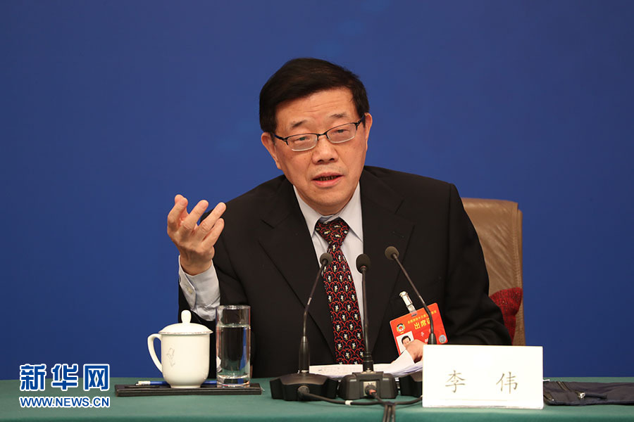 全國政協十三屆二次會議3月5日下午在梅地亞兩會新聞中心舉行記者會,邀請5位全國政協委員就“打贏防范化解重大風險、精準脫貧、污染防治三大攻堅戰”回答記者提問。圖為全國政協常委、人口資源環境委員會主任(中共),國務院發展研究中心主任、黨組副書記,國資委原副主任,原銀監會副主席李偉。新華網/中國政府網 陳杰 攝