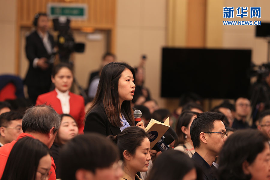 全國政協十三屆二次會議3月5日15:00在梅地亞中心多功能廳舉行記者會,邀請5位全國政協委員就“打贏防范化解重大風險、精準脫貧、污染防治三大攻堅戰”回答記者提問。圖為財新周刊記者提問。新華網/中國政府網 劉廈 攝