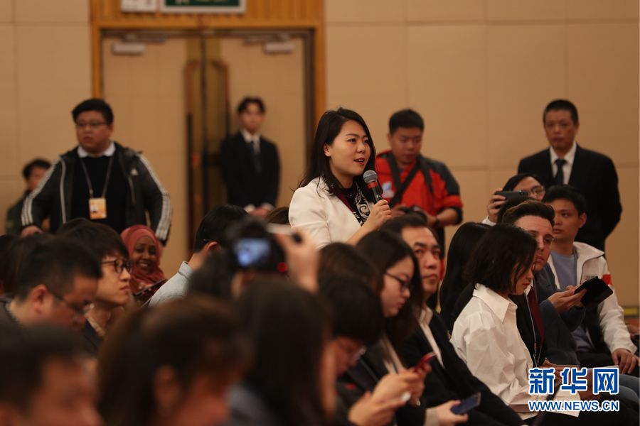 十三屆全國人大二次會議新聞中心于3月7日10時50分在梅地亞中心新聞發布廳舉行記者會,邀請國務院扶貧開發領導小組辦公室主任劉永富就“攻堅克難——堅決打贏脫貧攻堅戰”相關問題回答中外記者提問。圖為新華社記者提問。新華網 陳杰 攝