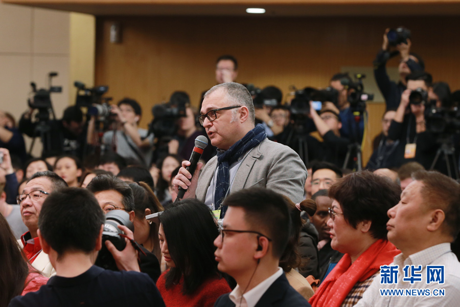 十三屆全國人大二次會議新聞中心3月8日10時在梅地亞中心新聞發布廳舉行記者會,邀請國務委員兼外交部長王毅就“中國外交政策和對外關系”相關問題回答中外記者提問。圖為安莎社記者。新華網/中國政府網 馬娟 攝