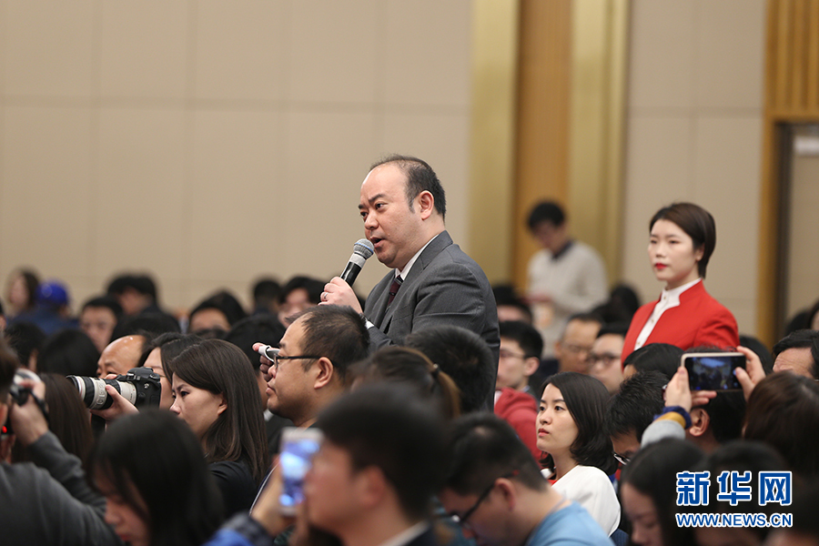 十三屆全國人大二次會議新聞中心于3月10日(星期日)上午10時30分在梅地亞中心新聞發布廳舉行記者會,邀請中國人民銀行行長易綱,副行長陳雨露,副行長、國家外匯管理局局長潘功勝,副行長范一飛就“金融改革與發展”相關問題回答記者提問。圖為日本經濟新聞記者提問。新華網/中國政府網 劉廈 攝