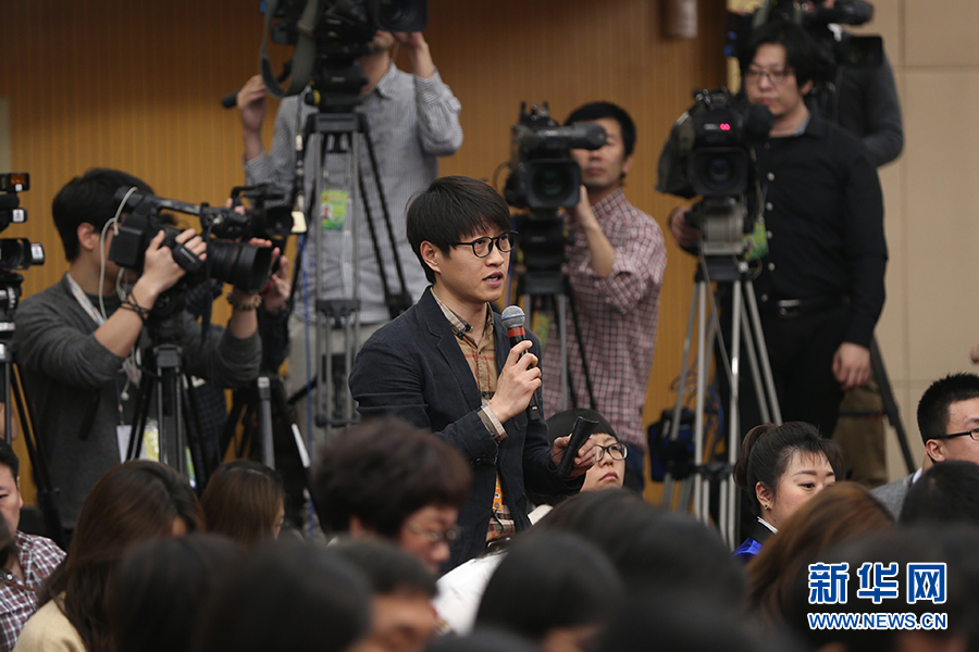 十三屆全國人大二次會議新聞中心于3月10日(星期日)上午10時30分在梅地亞中心新聞發布廳舉行記者會,邀請中國人民銀行行長易綱,副行長陳雨露,副行長、國家外匯管理局局長潘功勝,副行長范一飛就“金融改革與發展”相關問題回答記者提問。圖為中央廣播電視總臺國廣記者提問。新華網/中國政府網 劉廈 攝