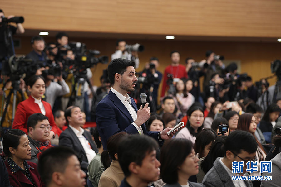 全國政協十三屆二次會議3月10日(星期日)上午8:45在梅地亞兩會新聞中心舉行記者會,邀請5位政協委員就“新時代政協履職”回答記者提問。新華網、中國政府網進行現場直播。圖為中國國際廣播電臺記者提問。新華網/中國政府網 劉廈攝