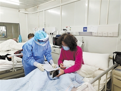 按照“紅區”病房的要求,非醫務人員不得進入,黃舒和隊友需身兼數職,除了做日常治療和護理外,她還要負責打掃衛生、病區消毒、照顧患者飲食起居等工作。“紅區”老年病人占據大比例,由于病人病情較重,黃舒和戰友需要幫他們喂飯喂水、接大小便、洗漱洗手等,工作量和辛苦程度可想而知。