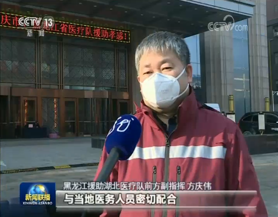 黑龍江援助湖北醫療隊前方副指揮 方慶偉:與當地醫務人員密切配合,在防上去下功夫,從源頭上去控制,降低(疾?。┌l生率,加大收治率,然后提高治愈率。