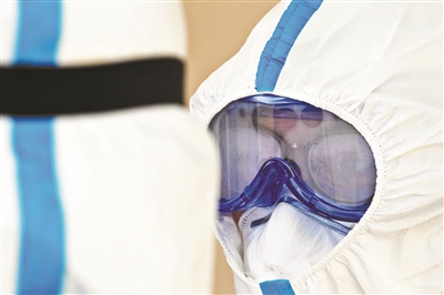在隔離病房待了一會兒,流調員的護目鏡就起了霧氣。記者 付丁 攝