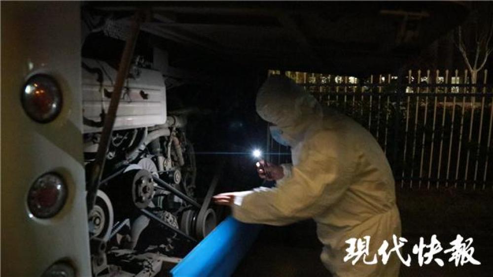 然而,陳強想起剛來的半個月,與現在的氛圍完全不同。“要說我不害怕,那肯定不現實。”陳強告訴現代快報記者,剛開始的半個月,他整個人都處于緊繃的狀態,防護服裹得緊緊的,也不敢與車上的醫護人員有過多的交流。“有一次我接了30名醫護人員,座位全部坐滿了,當時緊張極了。”隨著疫情的好轉,陳強也慢慢放下心來,他與醫護人員熟悉起來,之間也多了不少互動。