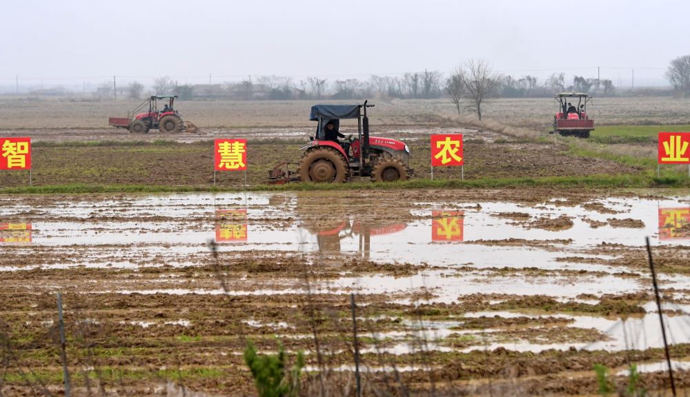 春雨下,幾臺(tái)旋耕機(jī)在江西省南昌縣蔣巷鎮(zhèn)大田現(xiàn)代農(nóng)業(yè)基地里來(lái)回作業(yè)。與其他農(nóng)機(jī)略顯不同的是,這些旋耕機(jī)的機(jī)身都裝有一個(gè)小小的智能終端和一個(gè)攝像頭。