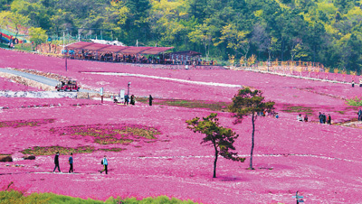 4月6日,江蘇省句容市芝櫻小鎮400余畝芝櫻花陸續進入盛花期,景區在做好疫情防控的基礎上向游客開放。鐘學滿 張映鋼攝