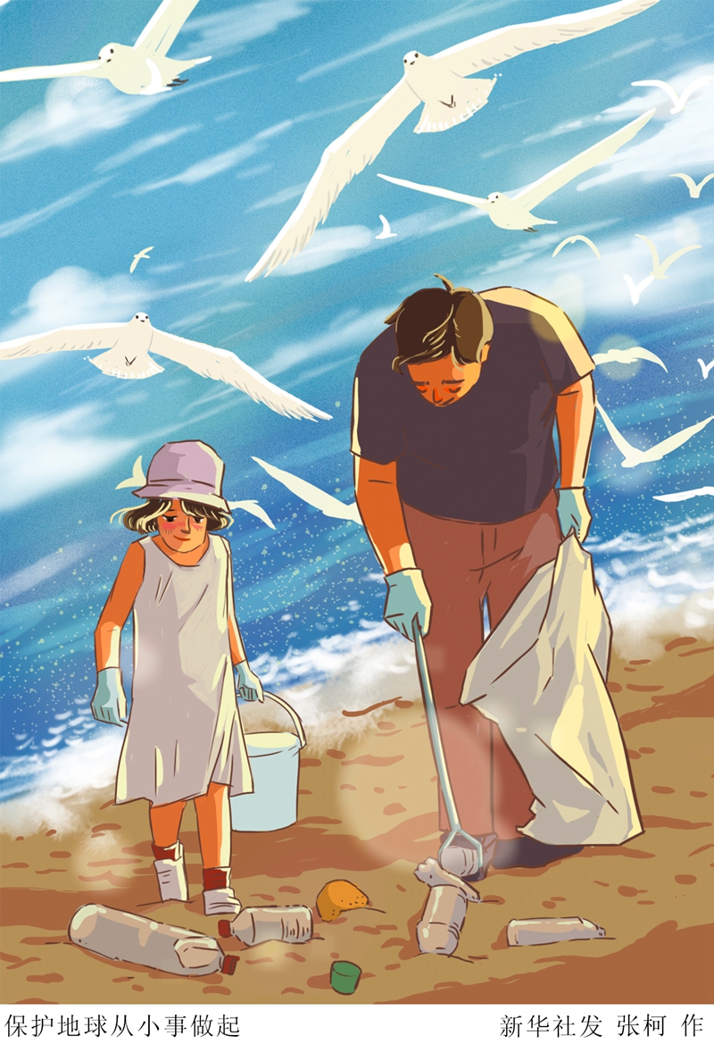 插畫:保護地球從小事做起 新華社發 張柯 作
