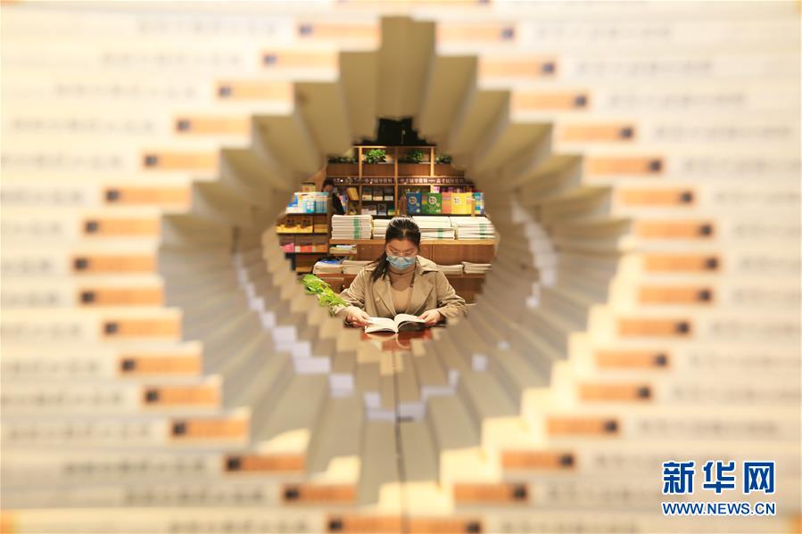 4月22日,讀者在貴州省畢節市七星關區一家書店內閱讀。 4月23日是“世界讀書日”。 新華社發(王純亮 攝)