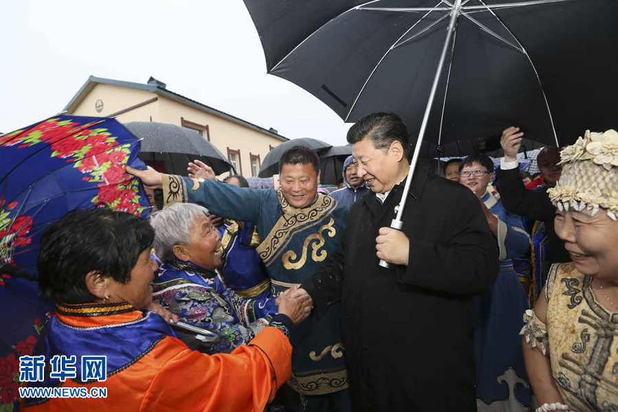 2014年春節前夕,習近平來到內蒙古,看望慰問各族干部群眾。他來到錫林浩特市寶力根蘇木(鄉)冬季那達慕,同牧民們一起觀摔跤,看賽馬,聽長調,賞歌舞。在傳統的“五畜祈?!眱x式上,他按照蒙古族習俗,用無名指蘸上銀碗盛著的鮮牛奶彈了三下,祝福來年風調雨順,五畜興旺,人民幸福安康。