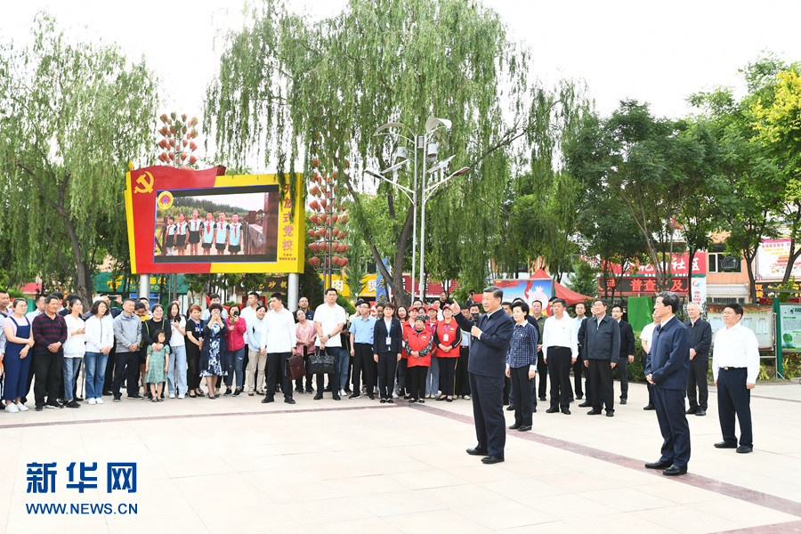 6月8日至10日,中共中央總書記、國家主席、中央軍委主席習(xí)近平在寧夏考察。這是6月8日下午,習(xí)近平在吳忠市利通區(qū)金花園社區(qū)廣場,同居民們親切交流。 新華社記者 燕雁 攝