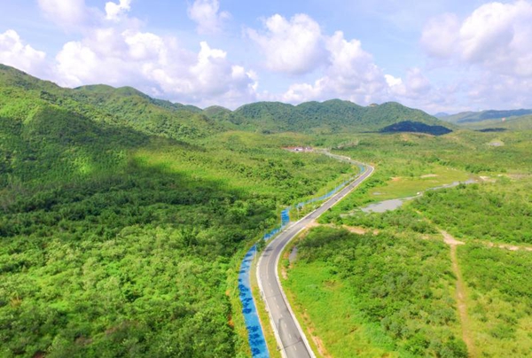 深圳市深汕特別合作區正在打造中的集“山道、河道、濱海棧道”于一體的圳美綠道鳥瞰圖。