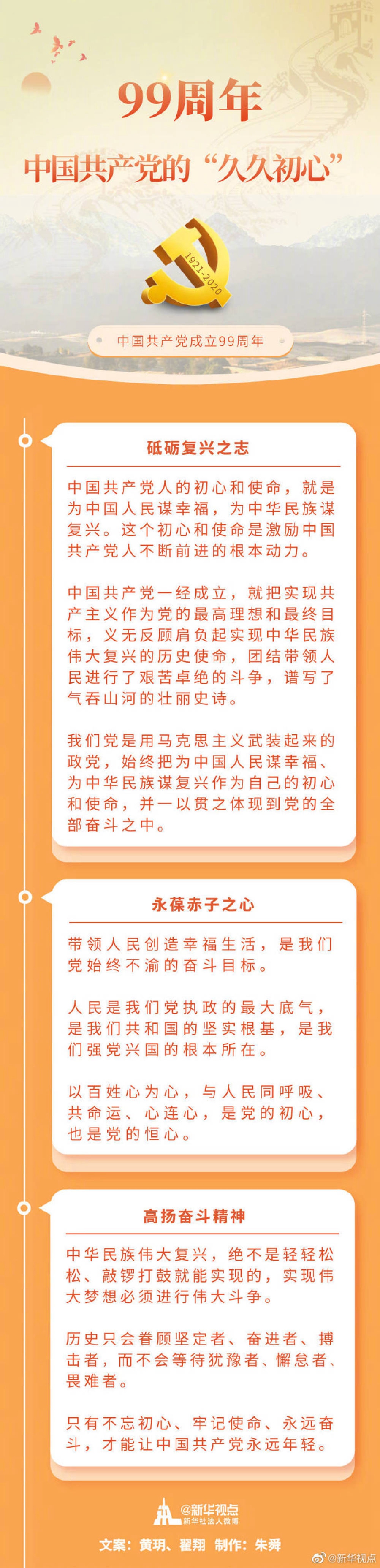 新華社北京6月30日電? 題:砥礪復興之志 永葆赤子之心——寫在中國共產黨成立99周年之際