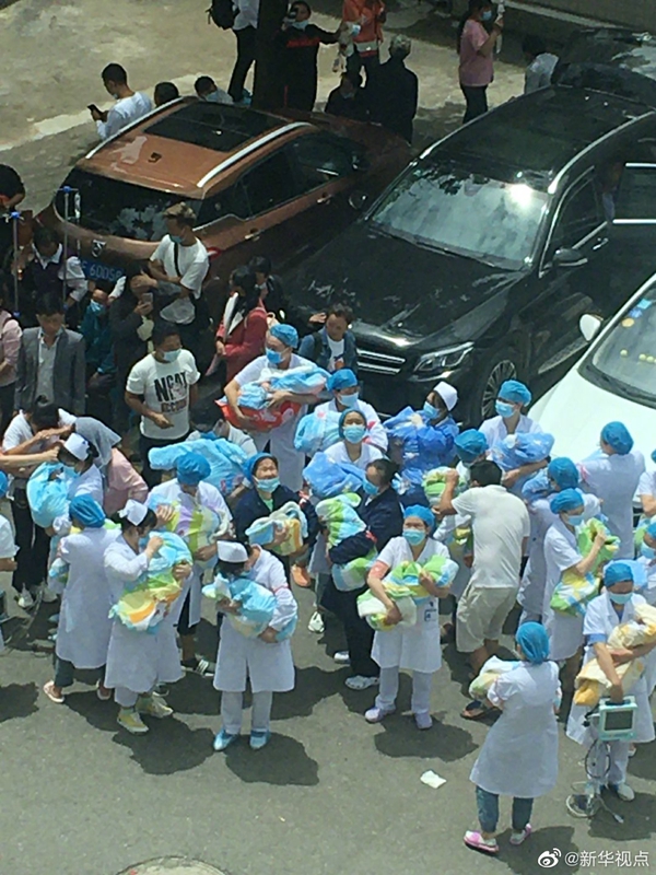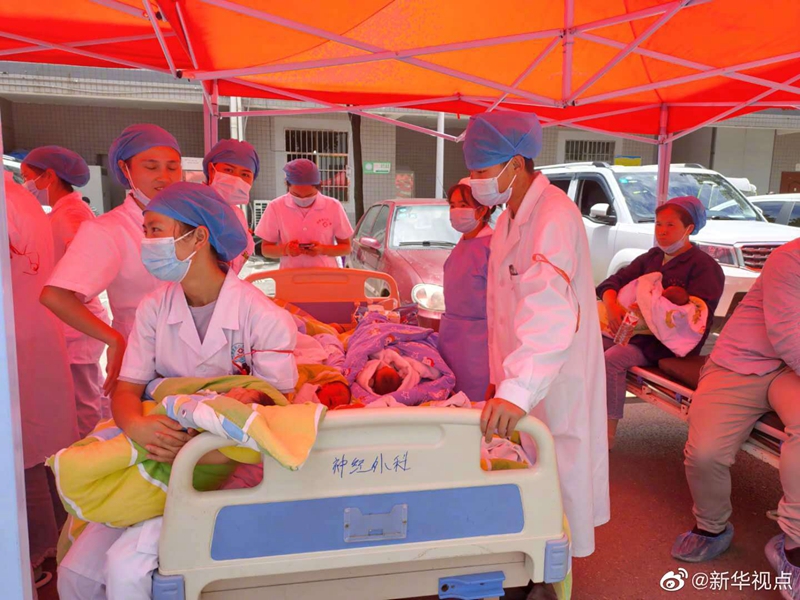 7月2日,貴州省畢節(jié)市赫章縣發(fā)生4.5級地震,震源深度13千米。地震襲來,當(dāng)不少人都往外疏散時,正在開展業(yè)務(wù)學(xué)習(xí)的赫章縣人民醫(yī)院新生兒科醫(yī)生們第一時間“逆行”病房,緊隨而來的還有實習(xí)生、急診科護士等。他們每人負責(zé)一個寶寶,抱著往外疏散,確保當(dāng)時在病房的26個新生寶寶平安撤離到安全地帶。致敬白衣天使!(記者王新明、駱飛 圖片來源赫章縣人民醫(yī)院)