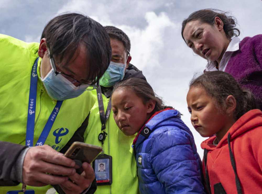 3月6日,中國電信集團拉薩分公司當雄電信局的技術人員在烏瑪塘鄉巴嘎村幫助村民調試無線網絡,方便偏遠牧區學生上好網課(晉美多吉/攝)