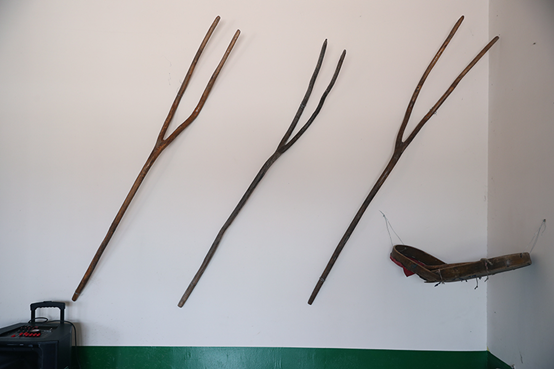 圖為鏟草用的鄂溫克農具。新華網記者焦鵬攝