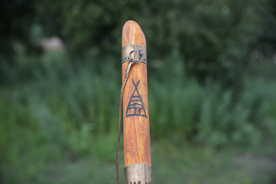 那春林制作的鹿哨上刻著鄂溫克族圖騰“撮羅子”。新華網焦鵬攝