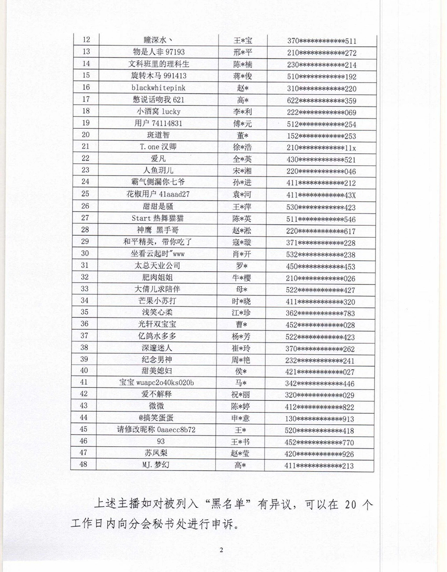 48名主播被列黑名單!封禁期限5年