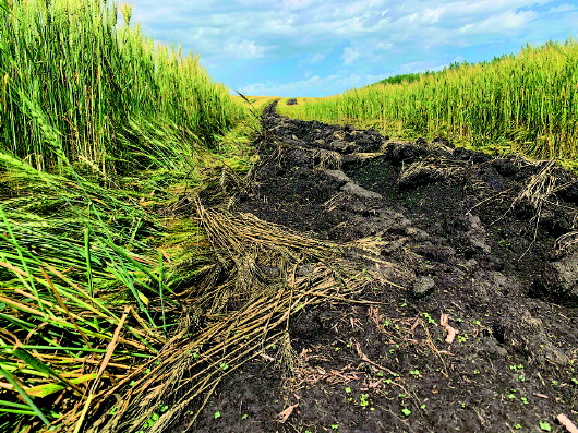記者現場看到,陳巴爾虎旗特尼河林場大片大片麥田、油菜田里,被鏟出一道道觸目驚心、黑綠相間的“斑馬線”?!霸儆惺嗵炀鸵崭盍?,現在毀了實在可惜!”附近群眾說。