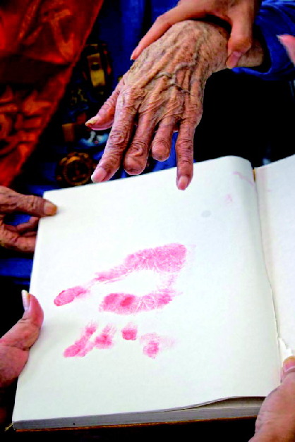 每一紙手印,都是一份榮光。 牽手:給老兵的暮年增添溫暖