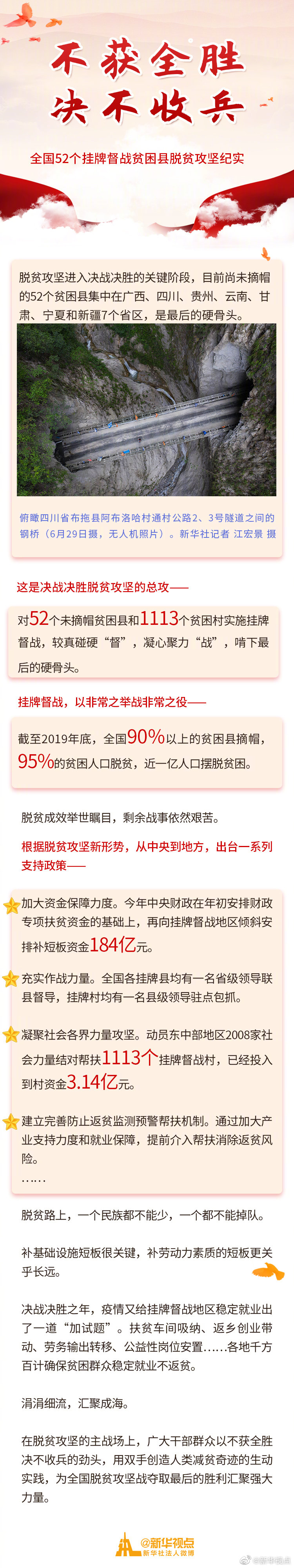 對(duì)52個(gè)未摘帽貧困縣和1113個(gè)貧困村實(shí)施掛牌督戰(zhàn),較真碰硬“督”,凝心聚力“戰(zhàn)”,啃下最后的硬骨頭。
