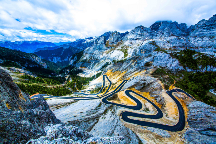 圖為香格里拉大峽谷巴拉格宗景區內高山和峽谷之間由斯那定珠出資修建的公路。 七林農布/攝