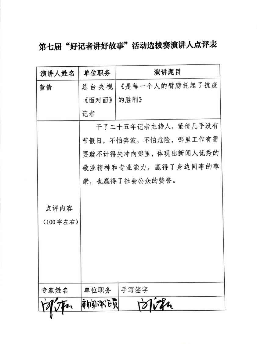在中央廣播電視總臺(tái)武漢新冠肺炎疫情報(bào)道團(tuán)隊(duì)里,董倩在記者中年齡最長(zhǎng)、資格最老、知名度最高。在武漢的95天,她完成了125期大屏直播、《面對(duì)面》訪談和新媒體《武漢觀察》,還主持了40期《武漢直播間》訪談節(jié)目。這些來(lái)自抗擊疫情一線的全景式報(bào)道,社會(huì)反響很大,不少節(jié)目播出以后點(diǎn)擊量都在上億次,發(fā)揮的作用得到中央領(lǐng)導(dǎo)同志充分肯定和社會(huì)各界高度評(píng)價(jià)。期間,除了因接觸到確診患者而必須隔離的4天外,董倩每天都在采訪。腰肌勞損疼得她夜里睡覺(jué)無(wú)法翻身,眼睛上麥粒腫發(fā)炎直流眼淚,她沒(méi)有休息過(guò)一天。她還不顧個(gè)人安危,40多次進(jìn)入紅區(qū)采訪。對(duì)于她來(lái)說(shuō),去哪里采訪的標(biāo)準(zhǔn)只有一個(gè):應(yīng)不應(yīng)該去報(bào)道,有沒(méi)有價(jià)值被報(bào)道。通過(guò)她的采訪,人們認(rèn)識(shí)了身患漸凍癥仍然到處奔波的金銀潭醫(yī)院院長(zhǎng)張定宇,輾轉(zhuǎn)三百多公里四天三夜返回崗位的90后女孩甘如意,以志愿者身份搞定醫(yī)護(hù)人員生活難題的快遞小哥汪勇,主動(dòng)請(qǐng)纓實(shí)施第一例新冠肺炎逝者遺體解剖的法醫(yī)劉良……面對(duì)武昌醫(yī)院殉職院長(zhǎng)劉智明的妻子蔡利萍時(shí),董倩強(qiáng)忍淚水,握著對(duì)方的手給予慰藉;72歲的中醫(yī)大家張伯禮流著眼淚對(duì)董倩說(shuō):你太會(huì)問(wèn)了!在全國(guó)抗擊新冠肺炎疫情表彰中,董倩被授予“全國(guó)抗擊新冠肺炎疫情先進(jìn)個(gè)人”稱(chēng)號(hào)。