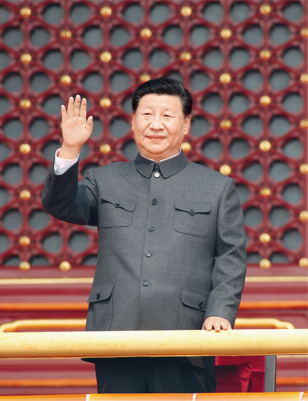 2019年10月1日,慶祝中華人民共和國成立70周年大會在北京天安門廣場隆重舉行。中共中央總書記、國家主席、中央軍委主席習近平發(fā)表重要講話并檢閱受閱部隊。這是習近平在天安門城樓上。 新華社記者 黃敬文/攝