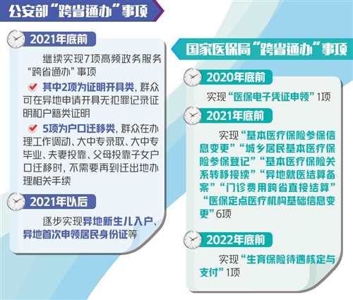 按照《意見》要求,140項高頻事項中,包括市場主體登記注冊、養(yǎng)老保險關系轉移接續(xù)等在內的第一批58項“跨省通辦”事項要在2020年底前實現(xiàn),工業(yè)產品生產許可證發(fā)證、異地就醫(yī)結算備案等74項要在2021年底前實現(xiàn),后續(xù)還將加快實現(xiàn)婚姻登記、社會保險參保繳費記錄查詢等8項事項的異地辦理。