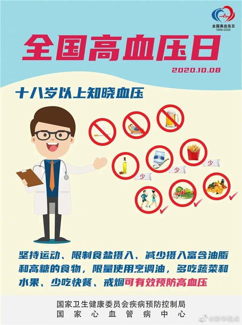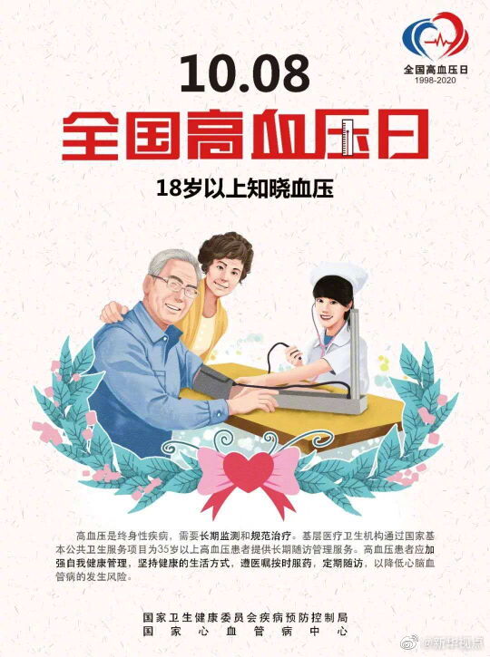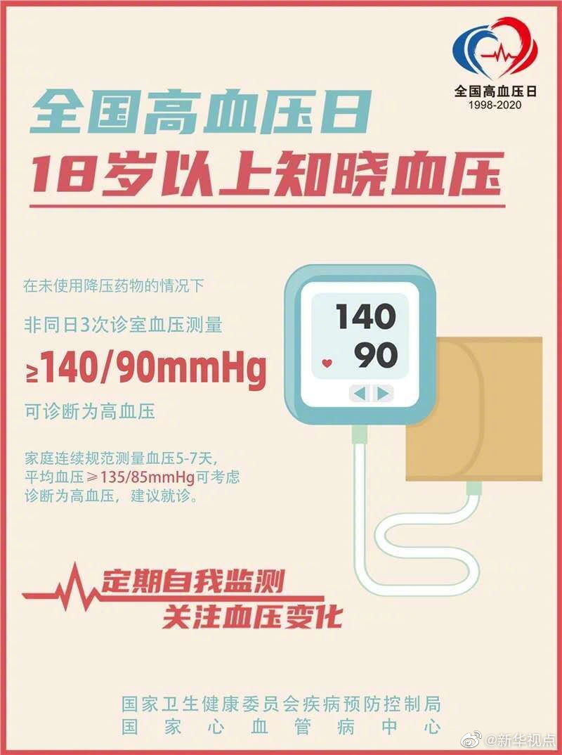 10月8日是全國(guó)高血壓日,今年的主題是“18歲以上知曉血壓”。根據(jù)國(guó)家心血管病中心的數(shù)據(jù),我國(guó)已有2.7億高血壓患者,因心血管病導(dǎo)致的死亡占國(guó)民總死亡的40%以上,約70%的腦卒中死亡、約50%心肌梗死與高血壓密切相關(guān)。國(guó)家心血管病中心提醒,高血壓并非老年人“專屬”,年輕化成為高血壓的發(fā)展趨勢(shì)。18歲及以上人群就應(yīng)定期自我監(jiān)測(cè)血壓,至少每年測(cè)量一次。在未使用降壓藥物的情況下,非同日3次血壓測(cè)量的收縮壓≥140mmHg和(或)舒張壓≥90mmHg,可診斷為高血壓。(記者屈婷)
