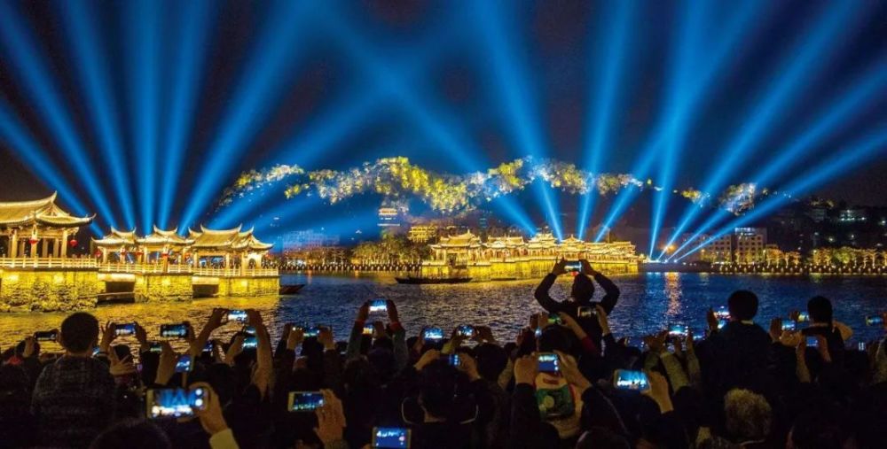市民和游客欣賞韓江上的燈光秀表演。新華社發 張偉雄 攝