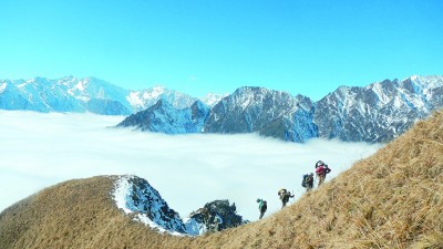 翻越山脊的臥龍調查小分隊 林紅強攝/光明圖片