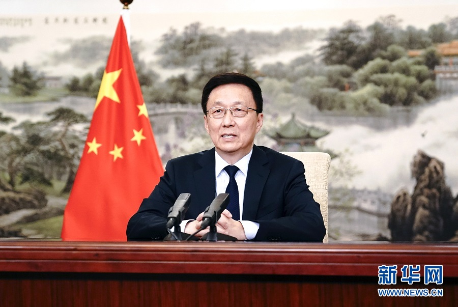 11月10日,博鰲亞洲論壇國際科技與創(chuàng)新論壇首屆大會開幕式在澳門舉行。中共中央政治局常委、國務(wù)院副總理韓正以視頻方式發(fā)表主旨演講。 新華社記者 丁林 攝