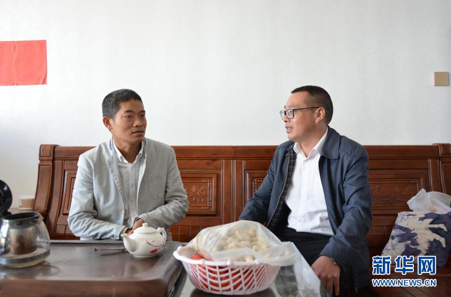 福建省龍巖市長汀縣策武鎮副鎮長張橋水向劉春生(左)了解收入情況(11月11日攝)。新華社記者 張華迎 攝