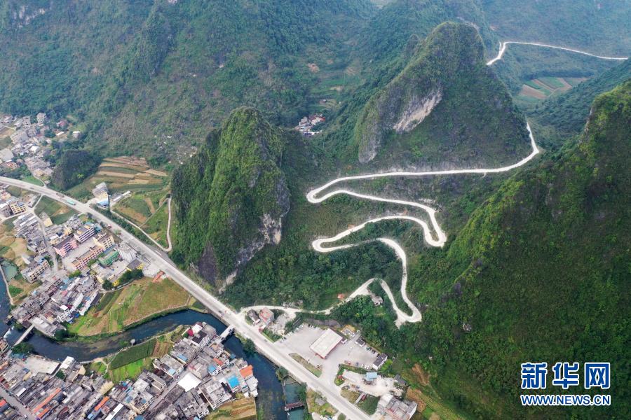 這是廣西都安瑤族自治縣大興鎮境內的公路(10月28日攝,無人機照片)。新華社記者 陸波岸 攝