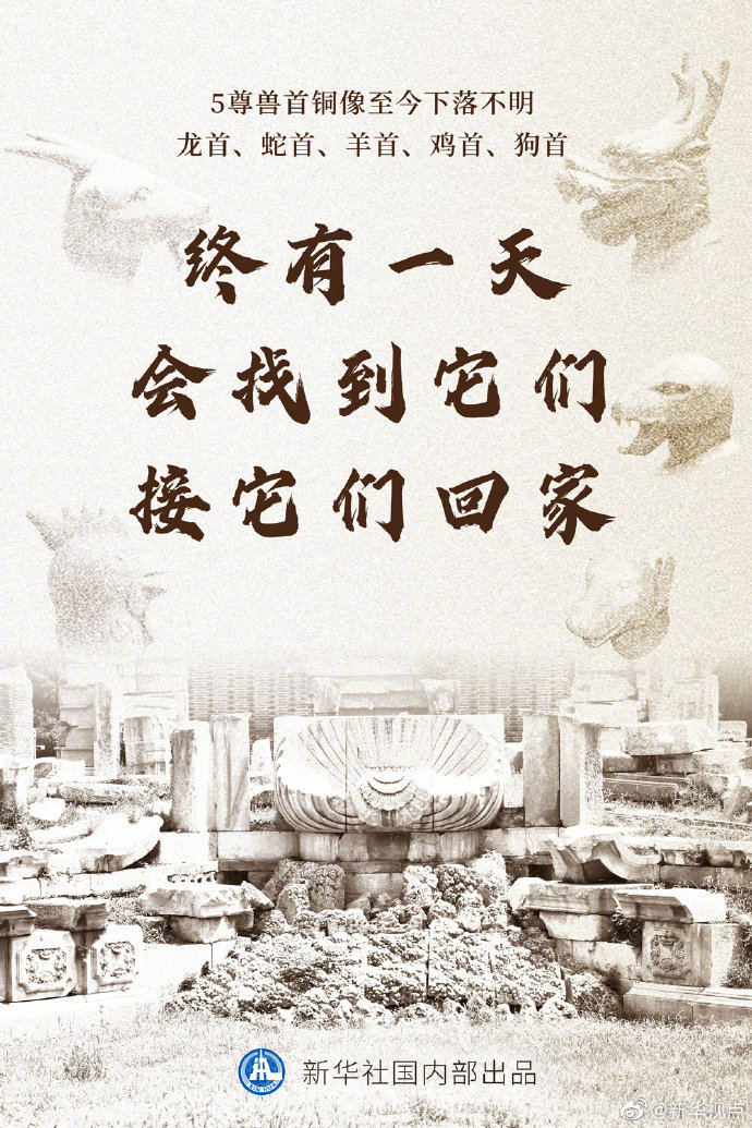 今天,“駿馬”歸園,它的5個(gè)“小伙伴”——龍首、蛇首、羊首、雞首、狗首銅像依舊下落不明。山再高,路再難,我們?cè)敢允辍资曛怅幰淮状酥Γ业剿鼈儯铀鼈兓丶遥?/p>