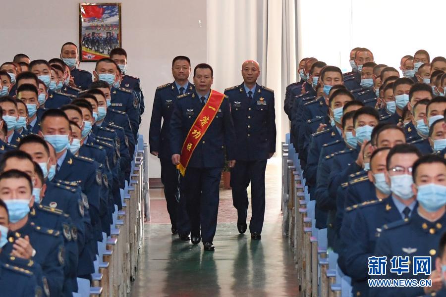 12月8日,南部戰(zhàn)區(qū)空軍航空兵某旅舉行授獎大會,王建東(中)走入會場。新華社發(fā)(唐俊 攝)