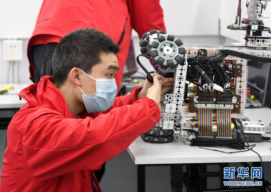 12月10日,選手在移動機(jī)器人項目比賽中調(diào)試機(jī)器人。新華社記者 盧漢欣 攝