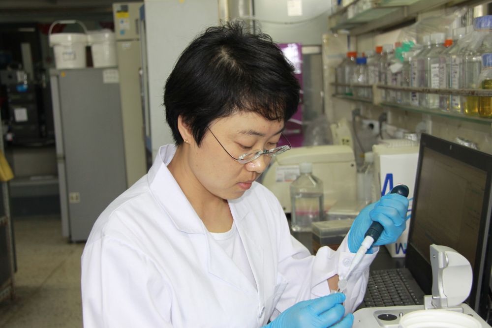 ↑在實(shí)驗(yàn)室工作的王奇慧(由受訪者提供)