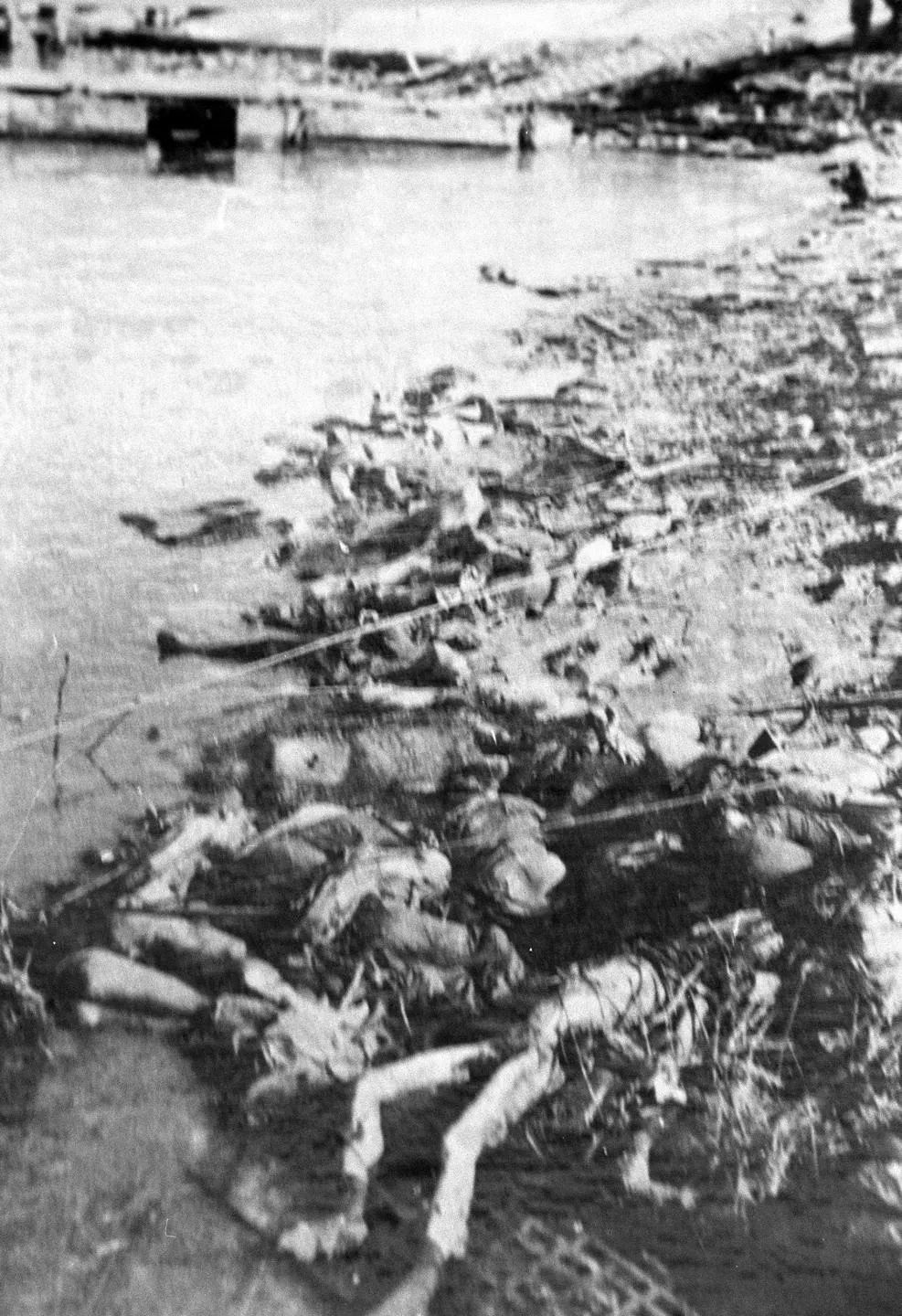 ↑日軍將被殺害的南京市民投入長江。新華社發