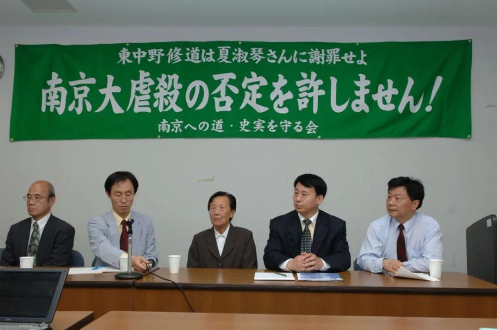 ↑2019年12月3日,南京大屠殺幸存者葛道榮(前排左一)、夏淑琴(前排左二)、艾義英(前排右一)及新確認死難者周萬榮的女兒陶秀華(前排右二)在家祭活動現場。新華社記者 李博 攝